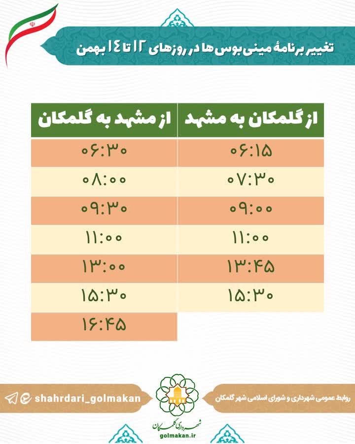 💠تغییر برنامۀ مینیبوسها در روزهای ۱۲ تا ۱۴ بهمن 🔸با توجه به افزایش مسافران مینیبوسها در روزهای آیین چراغ برات،…