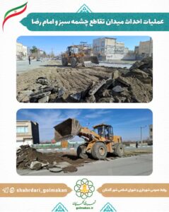 عملیات احداث میدان تقاطع خیابان چشمهسبز شمالی و بلوار امام رضا